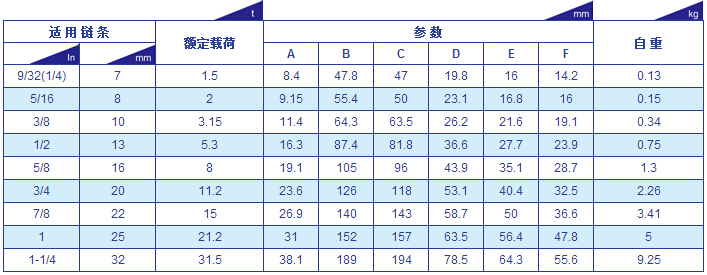 巨力G80美式鏈條卸扣參數表
